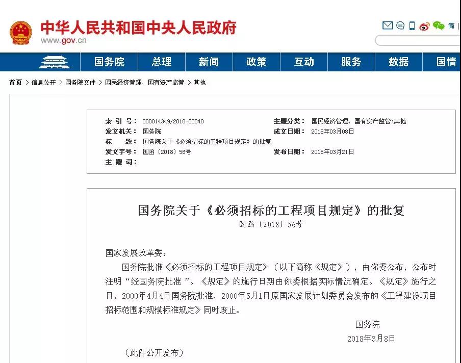 第四條 不屬于本規(guī)定第二條、第三條規(guī)定情形的大型基礎(chǔ)設(shè)施、公用事業(yè)等關(guān)系社會公共利益、公眾安全的項目,必須招標的具體范圍由國務院發(fā)展改革部門會同國務院有關(guān)部門按照確有必要、嚴格限定的原則制訂,報國務院批準。